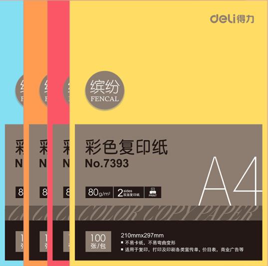• 商品名称:得力(deli) 7393A4 深蓝色彩色复印纸 80g 100张/包 单包装