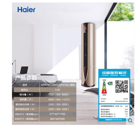• 商品名称:Haier/海尔 KFR-72LW/07UDP21AU1 3匹一级能效立式家用空调