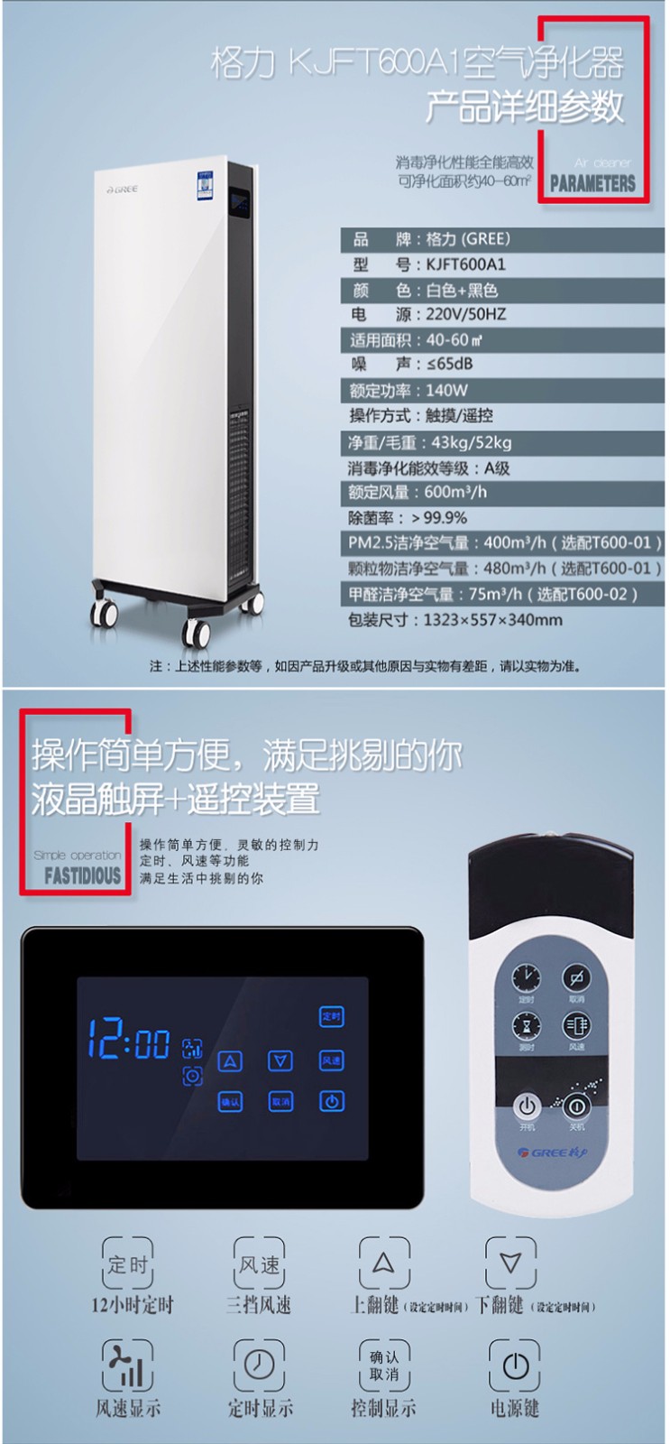 • 商品名称:格力空气消毒净化器_全效净化 消毒杀菌_KJFT600A1 白色+黑色_MP090000100