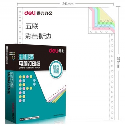 得力(deli)珊瑚海S241-5CS五联彩色电脑打印纸整张80列(撕边 色序:白红蓝绿黄 1000页/箱)